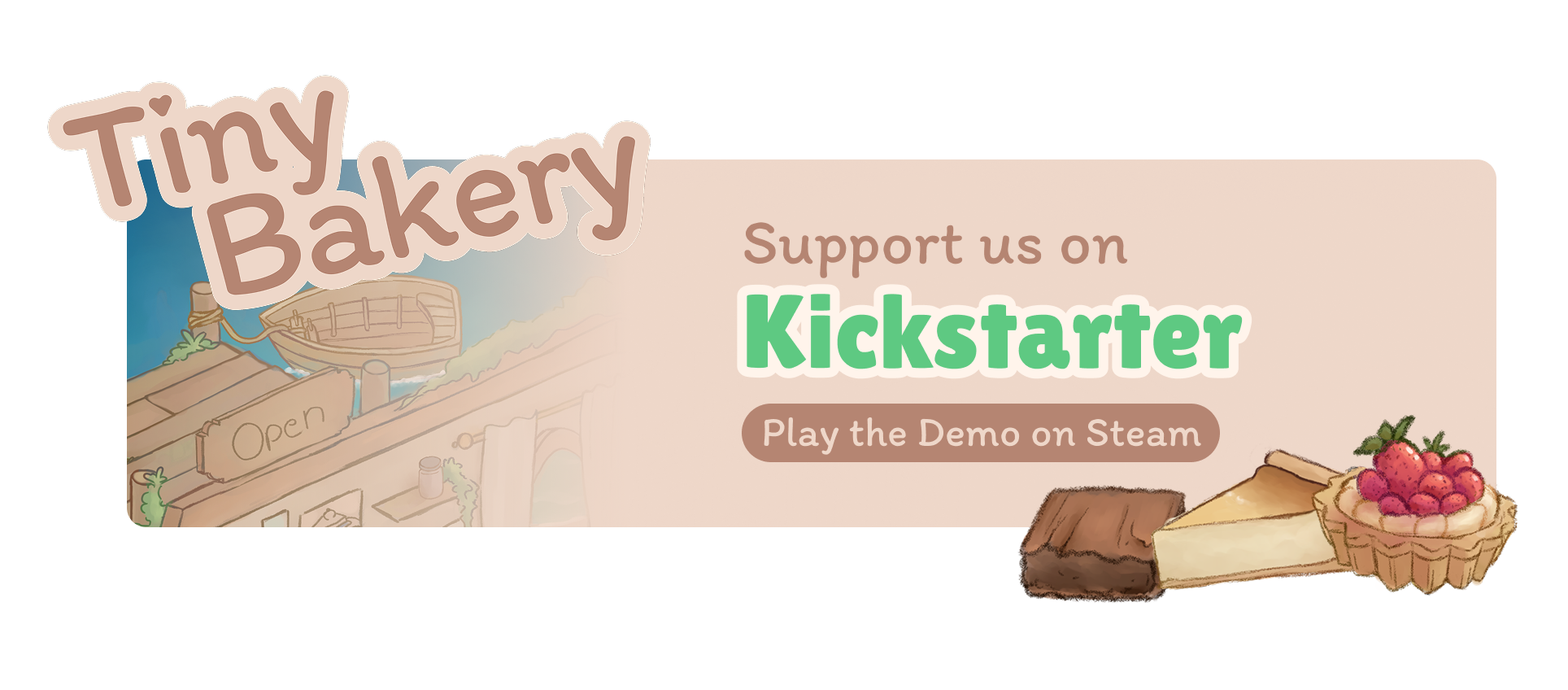 After the demo and Kickstarter, we’ll keep developing through Beta and into Early Access in 2026. We want to grow Tiny Bakery with your feedback — adding new recipes, slimes, and surprises along the way.
